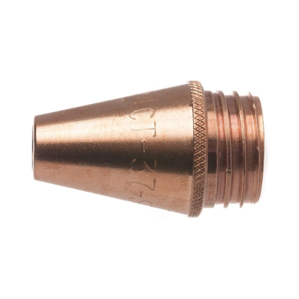 Tweco Coarse Threaded Copper Nozzle with 0.375 bore size is designed for nozzle insulator and is machined from a solid copper alloy bar to provide consistent dimensional stability as well as efficient heat dissipation. 1.75 Nozzle with 1.07 OD is ideal for use in medium to heavy duty welding application up to 450 A. It features part number rolled stamped on the outer surface for easy identification. It has a 2-piece design and is made of 145 tellurium copper alloy. Nozzle with recess contact tip relationship 0.125 - 0.156 is designed for use with up to 450 A Tweco No. 4 MIG guns. It is sold as 2 per pack.
