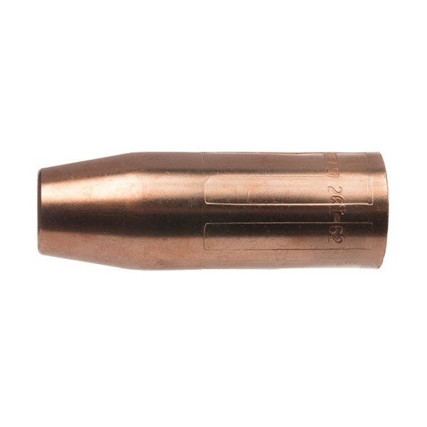 Tweco Self Insulated Copper Nozzle with 3/4 bore size is designed for standard gas diffuser for use with up to 600 A Tweco no.6 MIG guns. 3.372 Nozzle with 1.187 OD is ideal for use in medium to heavy duty welding application up to 600 A. It features part number rolled stamped on the outer surface for easy identification. It has a 3-piece design without an additional insulator includes a nozzle housing, which is cut and formed from copper alloy tubing, a nozzle insert machined from a solid brass and nozzle insulator constructed of silicone material. It has nozzle insert that crimped in place to let the nozzle to thread onto the conductor tube. Nozzle offers electrical insulation required from the gas diffuser using the nozzle insulator. Nozzle with recess contact tip relationship 0.125-0.156 is made of 122 DHP copper alloy and is best suited for higher heat applications requiring longer electrical stick-out or in cases where the nozzle touches the work piece. Nozzle is sold as 2 per pack.