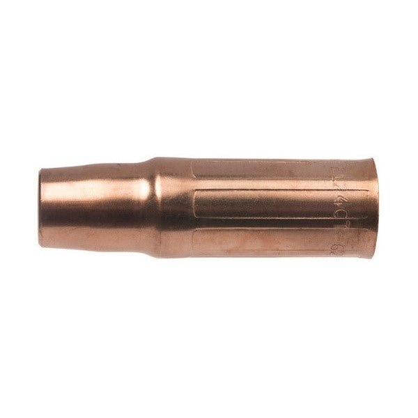 Tweco Brass Nozzle with 5/8 bore size is perfect for standard gas diffuser and protects the quality of your welding as well as the life of your gun. Ideal for use in heavy duty welding application up to 250 A. It features part number rolled stamped on the external surface for easy identification. Nozzle with flush contact tip relationship 0.062 is made from copper alloy. It has a 3-piece design includes a nozzle housing, which is cut and formed from 122 DHP copper alloys tubing, a nozzle insert machined from a solid brass and nozzle insulator constructed from silicone material. It features threads on the standard EL gas diffuser. It has nozzle insert that crimped in place to let the nozzle to slide over a metal spring that is a part of the gas diffuser. Nozzle offers electrical insulation required from the gas diffuser using the nozzle insulator. Nozzle is sold as 2 per pack.