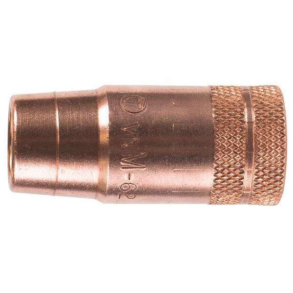 Nozzle, Compatible with Brand Tweco, Series Velocity2, Compatible with Series Classic No. Series, Spray Master Series, Supra XT Series, Bore Diameter 3/4 in, Connection Type Threaded, Nozzle to Tip Relationship Flush, Maximum Amperage 350 A, Material Copper, Insulation Type Self-Insulated, Duty Rating Medium Duty, For Contact Tip Series VTM, VTMA, Welding Processes MIG Welding (GMAW), Current Range 0 A to 450 A, Application MIG Welding