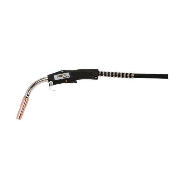 MIG Gun, MIG Gun Type Air-Cooled MIG Gun, Cooling Method Air-Cooled, Series WeldSkill WM 400, Maximum Current 400 A, Duty Cycle 60 Percent, For Gas Type CO2 (Carbon Dioxide), Maximum Wire Diameter 0.063 in, Cable Length 15 ft, For Rear Connection Type Euro-Compatible, Handle Type Curved, Trigger Type Standard, Neck Tube Type Fixed, Neck Tube Angle 60 Degrees , For Wire Type Aluminum, Flux-Cored, Solid, Model WM400X-15-116, Tip Series WS14, Welding Processes MIG Welding (GMAW)