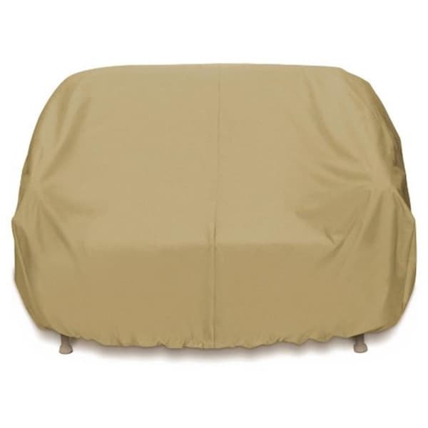 This Two Dogs Designs Patio Sofa Cover offers high quality protection for your outdoor patio furniture. Constructed of durable double stitched heavyweight 500*;300D poly-tuf material with 0.50 mm PVC lining. Comes with Cloth Tie ties and an elasticized bottom to secure to chair. Two Dogs covers are cut oversized which allows air to circulate when the cover is secured in place, they have no vents in the fabric to allow in moisture or dirt. Will enhance patios, decks, yards and any other area where you enjoy the outdoors. Coordinates with other Two Dogs Designs outdoor cover. Features Thick double stitched 500*;300D denier polyester outer construction to withstand the elements 0.50 mm PVC lining to help keep moisture away Fits most standard 3-seat sofas and oversized loveseats Keeps sofa or loveseat dry and protected from the elements Has Cloth Tie tie downs and an elasticized bottom Double stitched Weather resistant Clean with soap and water Color - khaki Two Dogs Designs also offers coordinating covers for outdoor furniture pieces to create a unified look