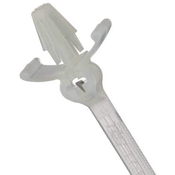 Cable Tie, Mountable, Actual Length 7.88 in, Width 0.18 in, Nominal Length 8 in, Locking Style Stainless Steel Barb, Color Natural, Basic Material - Cable Tie Nylon, Tensile Strength 50 lb, Halogen-Free, Standard, Mounting Method Push Mount, Push Mount Style Arrowhead with Wings, Nominal Max. Bundle Dia. 1 3/4 in, Temp. Range -40 Degrees to 185 Degrees F, Number of Straps 1, Flame Retardant No, Metal Detectable No, Outdoor Use No, Panel Mount Wall Thickness 0.04 in to 0.16 in