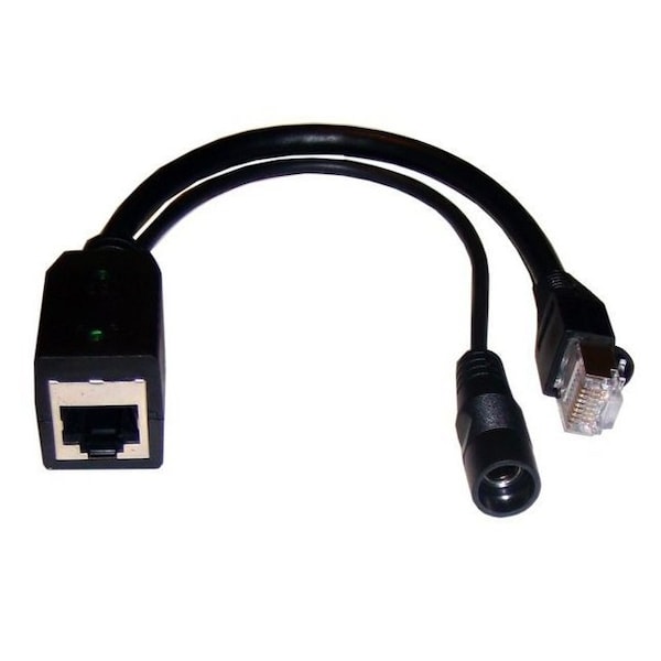 PoE Injector with LED for Power and Current. Injects DC Power up to 24VDC to RJ45 Socket pins 4,5 (+) and 7,8(-). Shielded. Black