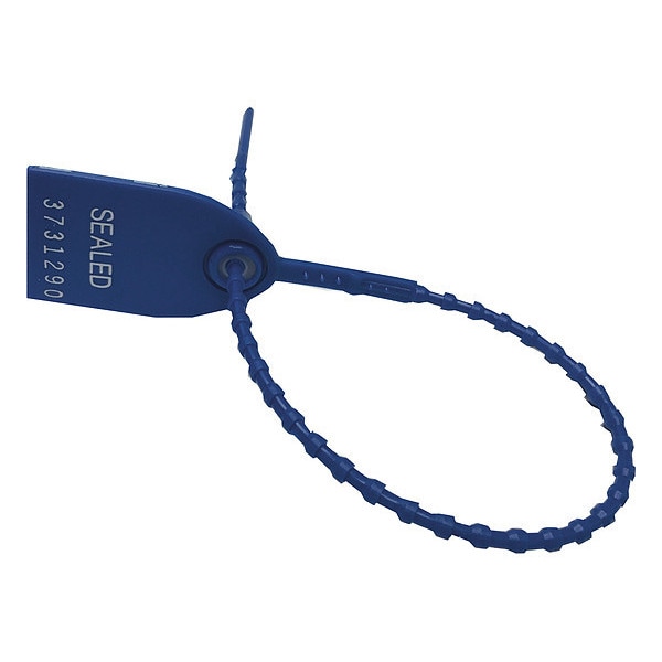 Pull-Tight Seals, Polyethylene, Blue, Marking Parameters Consecutive Numbering, SEALED, Strap Length 6 in, Strap Width 1/8 in, Breaking Strength 40 lb, Package Quantity 1000