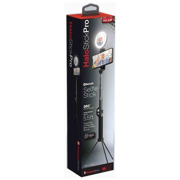 Halo Stick Pro takes your selfies to the next level. Ultra-compact and extendable up to 5.5 ft., it features a detachable tripod base so you can set it up anywhere. The ring light and mirror elevate your visual while the Bluetooth shutter lets you capture perfect pictures and videos from a distance.
