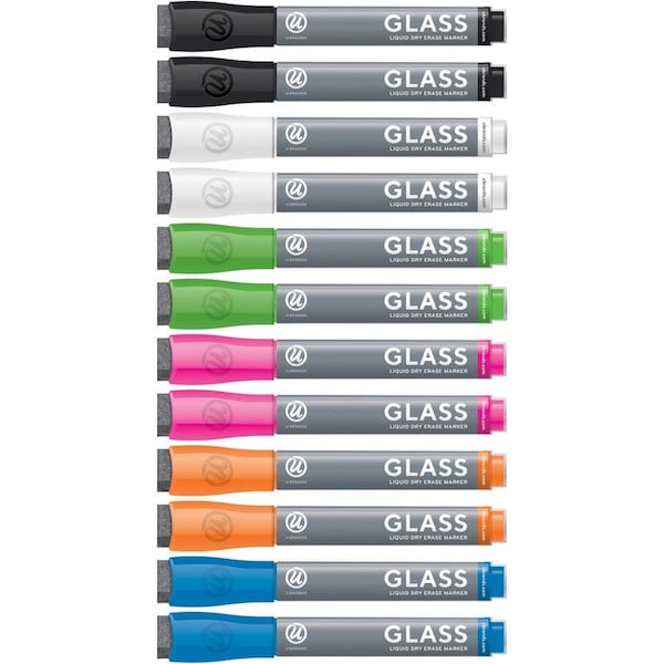 Liquid glass markers with a bullet tip feature bold and vibrant color inks that dry quickly, erase easily and work great on any glass board surface. They also feature the longest-lasting, nontoxic, low-odor ink that is great in any classroom, home or office environment. Bullet tip delivers a bold and precise writing experience. Each marker cap features a built-in eraser that enables quick, convenient and precise erasing. For best results, recap the marker immediately after use and store horizontally.