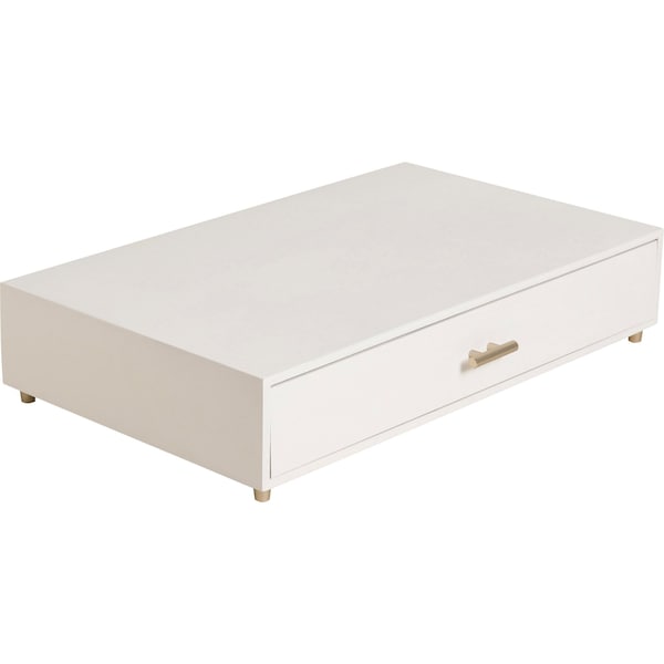 Part of the chic, U Brands Juliet Collection, this monitor stand raises your monitor to comfortable viewing height and maximizes work space. Real pine wood construction with brass accents means you can support a monitor up to 20 lb. in elegance and without sacrificing exceptional function. Storage drawer organizes essentials such as pens and paper clips. This monitor stand can be set on any desktop, nightstand, end table or vanity to organize your living space.
