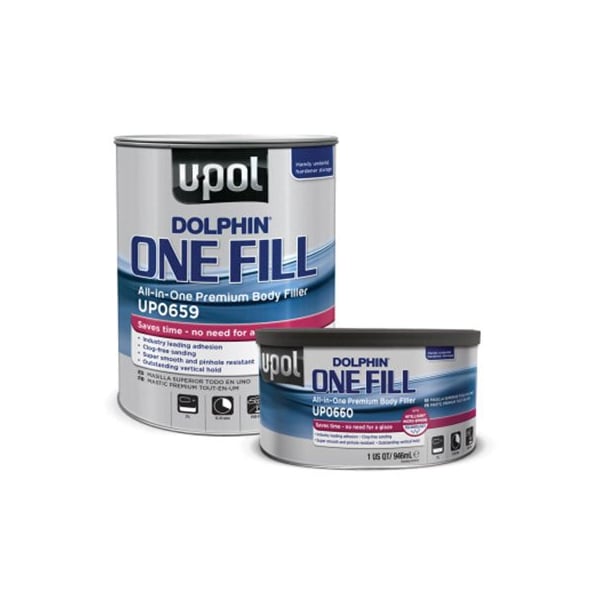 Dolphin One Fill is an All-In-One Premium Body Filler. One Fill's intelligent micro-sphere technology formula builds like body filler yet is super smooth and pinhole free like glaze so you can skip the glaze and get on to priming and painting in 20 minutes. Industry leading adhesion and to more substratesSands to a super fine power that wont clog your sandpaperFeatheredges with no lifting or ballingOutstanding vertical hold