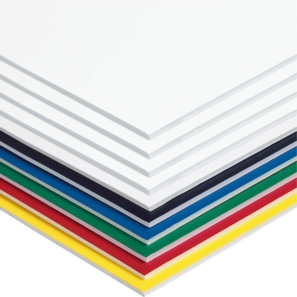 Foam board sheets contains polystyrene extruded foam that is laminated between two sheets of paper to form a lightweight but strong, rigid surface. They are ideal for crafts, school projects, framing, mounting, displays and exhibits. Easy-to-cut sheets have a smooth surface that can accept a wide range of media, including paints. Acid-free foam board is 3/16" thick. Assorted pack contains five sheets of white and one sheet each of red, blue, black, green and yellow.