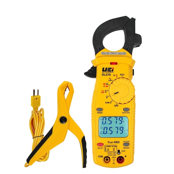 The DL579 is an TRMS HVAC/R Clamp Meter It has functions like AC/DC voltage, AC amps, AC/DC microamps, resistance, capacitance, frequency and duty cycle. Includes test leads, a pair of alligator clips,thermocouples, an ATTPC4, a zippered pouch.