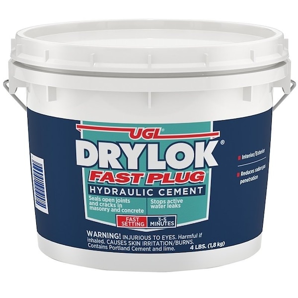 DRYLOK Fast Plug is a fastsetting hydraulic cement that sets in just 3 to 5 mins, preventing water from flowing, even under pressure, through cracks and holes in concrete and masonry structures It's ideal for sealing floor and wall joints, patching settlement cracks and holes in masonry walls and anchoring metal to masonry Similar to mortar, it sets and hardens extremely quickly