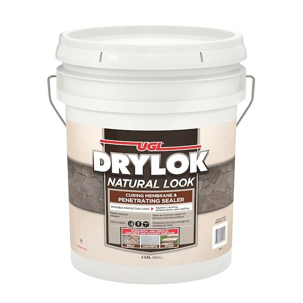 DRYLOK natural look sealer is a nonyellowing protective coating that can be used as a sealer or concrete curing membrane As a sealer, DRYLOK natural look sealer penetrates deep to seal and protect masonry against acids, alkalis, road salts, deicing compounds, household cleaners, gasoline, oil and weathering Protects against dusting, staining and spalling As a concrete hardener, When applied to freshly poured concrete, after the surface has set for 24 hrs and excess water has been removed, DRYLOK natural look sealer will control water evaporation resulting in maximum concrete hardness
