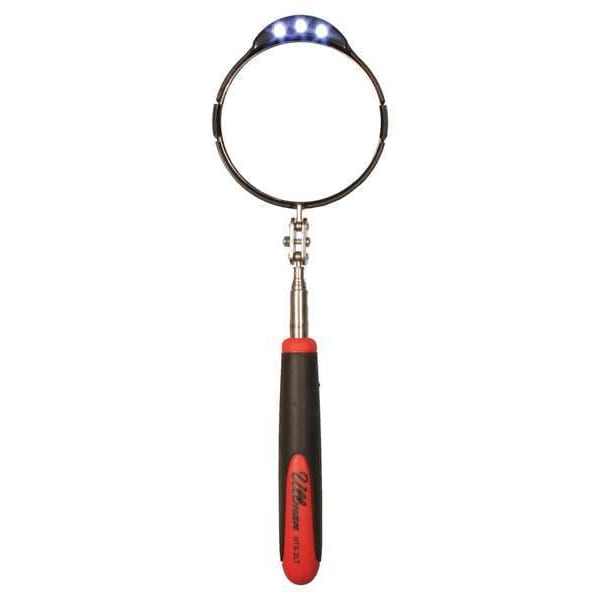 Inspection Mirror, Base Type Lighted, Compressed Length 11 1/8 in, Extended Length - Maximum 30 1/4 in, Handle Material Rubber, Handle Style Knurled, Included Wheels Not Applicable, Magnification Not Applicable, Mirror Adjustment - Maximum 360 Degrees , Mirror Diameter 3 3/8 in, Mirror Length Not Applicable, Mirror Width Not Applicable, Mirror Material Stainless Steel, Mirror Shape Round, Mirror Surface Shape Convex, Shaft Type Telescoping, Use Location Indoor, Outdoor