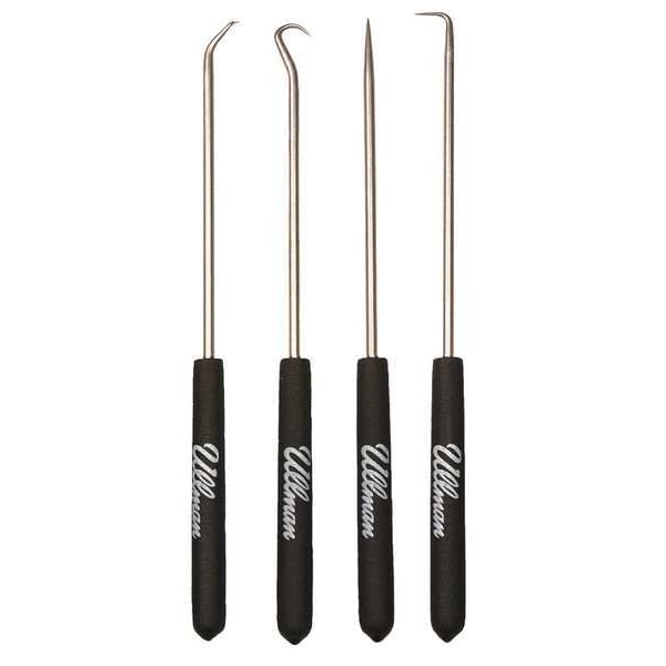 Hook/Pick Set, Handle Material Plastic, Handle Style Knurled, Number of Pieces 4, Overall Length 6 7/8 in, Tip Material Steel, Tip Style 90 Degrees Angle, 45 Degrees Angle, Hook, Straight, Tip Thickness Not Applicable, Product Type Hook/Pick Set, Package Quantity 4
