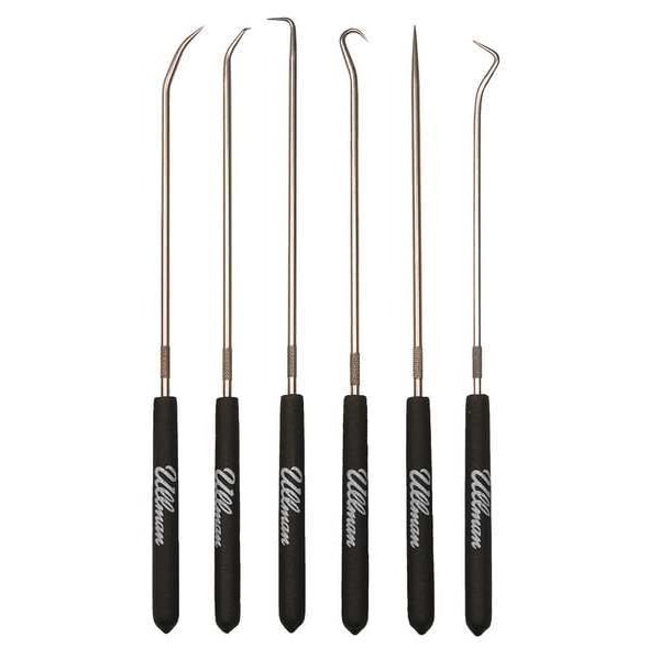 Hook/Pick Set, Handle Material Plastic, Handle Style Knurled, Number of Pieces 6, Overall Length 9 3/4 in, Tip Material Steel, Tip Style 90 Degrees Angle, 45 Degrees Angle, Multi-Angle, Hook, Straight, Tip Thickness Not Applicable, Product Type Hook/Pick Set, Package Quantity 6