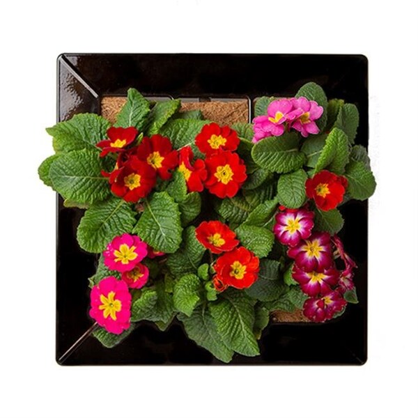 Create professional vertical wall plantings for beautiful outside decorating! The Vertical Wall Planter has a metal planting base with a sliding front grate for easy planting. The planter features holes at the top for watering access while drainage holes throughout the planter keeps the soil moist without trapping the water. But the true secret is the AquaSav Coco liner. The Aqua-Sav Coco liner provides just enough water giving the soil and roots time to absorb, while preventing soil and fertilizer run-off. The liner also provides natural air circulation around the plants root system promoting healthy growth. A perfect way to showcase flowers, succulents and herbs! Easy to plant & water. Steel hooks for easy hanging.