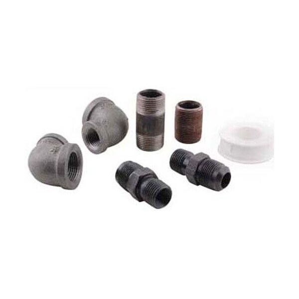 Color: Black ;Material: Iron ;Includes: (2) 1/2" Npt X 1/2" Flare Coupling | (2) 3/4" Npt;X 1/2" Npt Reducing Elbow | 3/4 Npt X 2" Nipple, 3/4" Npt;Close Nipple