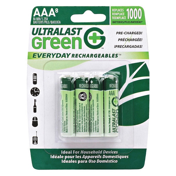Battery 1.2 Volt Nickel Metal Hydride Ultralast Everyday AAA 8 Pack