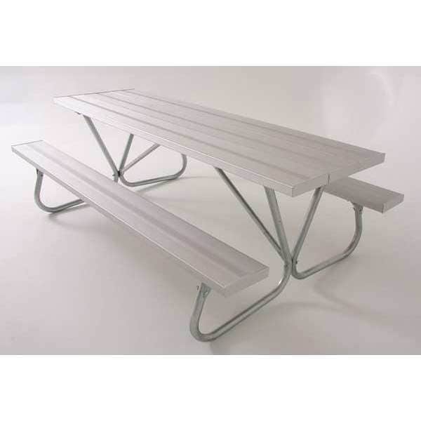 Picnic Table, Assembly Unassembled, Bench Coating/Finish Anodized, Bench Color Silver, Bench Depth 9 1/4 in, Bench Height 18 in, Bench Length 72 in, Bench Structural Material Aluminum, Frame Color Silver, Frame Diameter 1 5/8 in, Frame Finish Galvanized, Frame Material Steel, Includes Assembly Tools No, Includes Mounting Hardware No, Includes Umbrella Hole No, Mounting Location Portable, Number of Benches 2, Overall Diameter Not Applicable, Overall Height 30 in, Overall Length 72 in