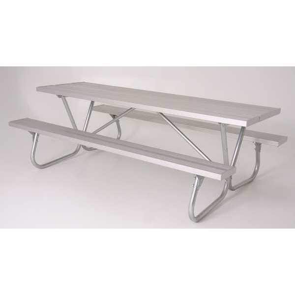 Rectangle Picnic Table, Silver, Aluminum, 96 in L, 30 in H Overall Plank
