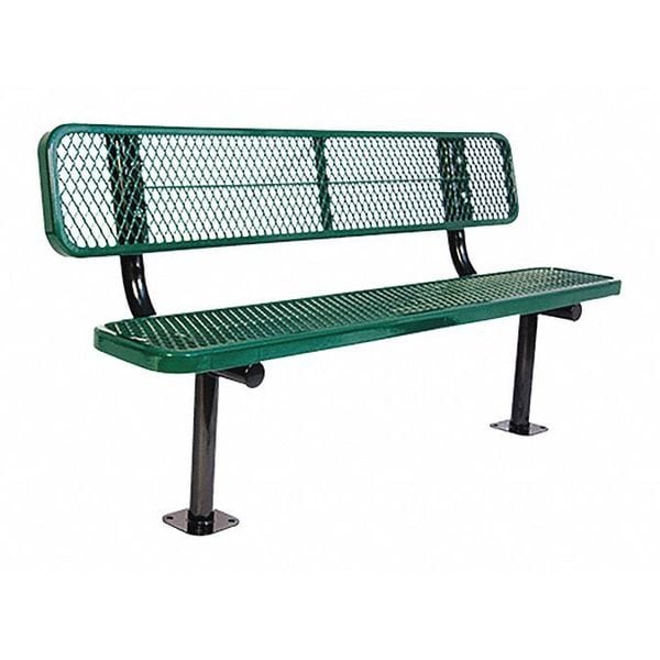 Outdoor Bench, Frame Material Steel, Includes Back Yes, Mounting Location Surface, Overall Depth 22 3/8 in, Overall Height 35 1/4 in, Overall Length 72 in, Seat Coating/Finish Thermoplastic Coated, Seat Color Green, Seat Structural Material Steel, Frame Color Black, Surface Texture Diamond Mesh, Assembly Unassembled, Back Height 35 1/4 in, Edge Style Rounded, Features MIG Welded Frame, UltraCoat Extra Heavy Duty, Frame Finish Powder Coated, Includes Mounting Hardware Yes