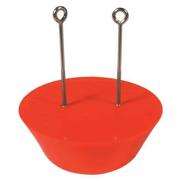 Drain Plug, Color Orange, Diameter At Top 13 1/2 in, Diameter at Bottom 10 in, Diameter at Center 11 5/8 in, Fits Drain Dia. 12 in, Handle Material Metal, Handle Type Removable Eye Bolt, Height 5 in, Includes Removable Eyebolt, Maximum Liquid Temperature Exposure 225 Degrees F, Max. Storage Temperature 120 Degrees F, Min. Storage Temperature 0 Degrees F, Overall Height 13 in, Plug Material Polyurethane, Product Weight 25 lb, Storage Temp. 0�F - 120�F