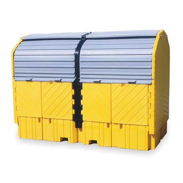 Spill Pallet, Covered, Spill Capacity 535 gal, Spill Containment Load Capacity 16,000 lb, Length 128 in, Width 67 in, Height 96 in, Drain Included Yes, Material Polyethylene