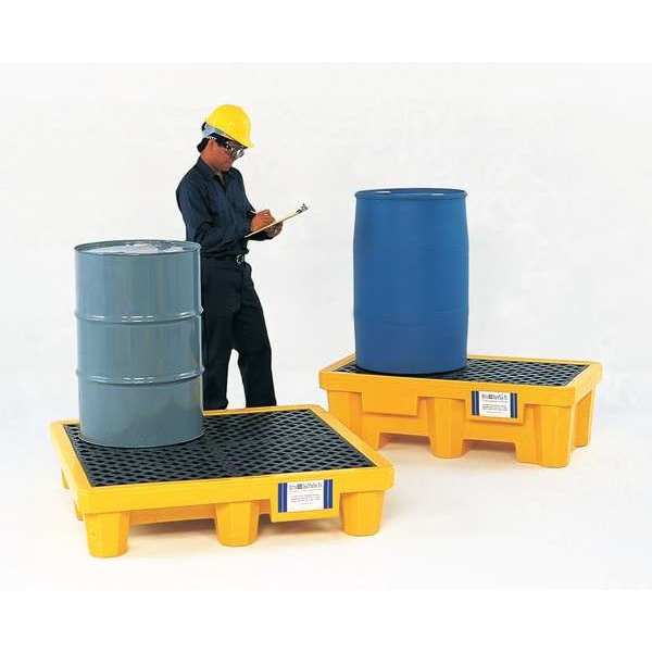 Spill Pallet, Spill Containment Pallets, Uncovered, Number of Drums 4, Spill Capacity 66 gal, Spill Containment Load Capacity 6,000 lb, Length 53 in, Width 53 in, Height 11 3/4 in, Drain Included No, No, Material Polyethylene