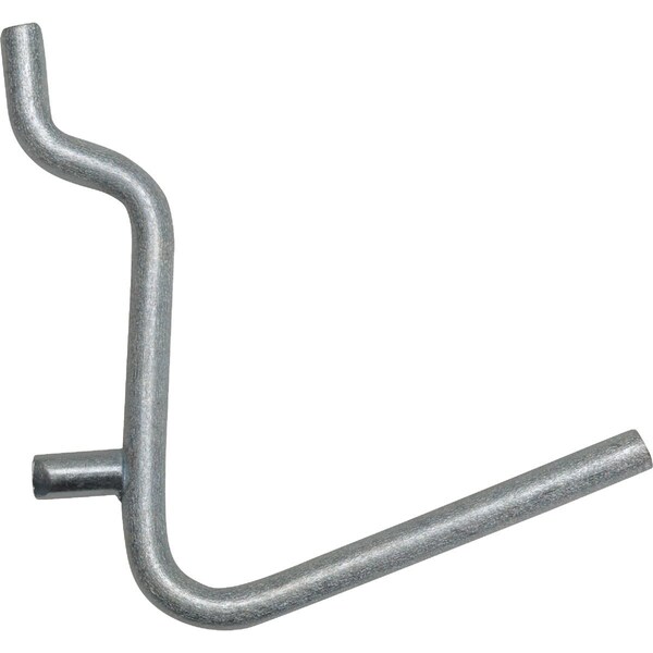 1-1/2 In. angled pegboard hook fits in 1/4 In. pegboard. Zinc-plated steel resists rust and corrosion making them perfect for the garage shed workshop or basement.