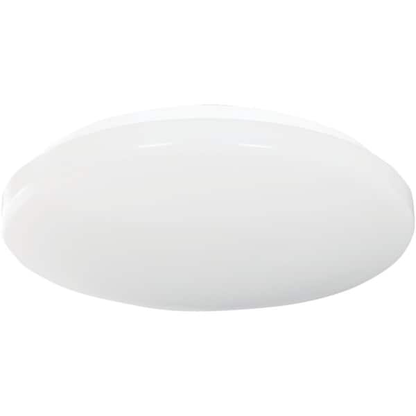 14-inch white round LED (light emitting diode) flush mount light fixture. Features a selectable color temperature with choices of 3000-kelvin 4000-kelvin and 5000-kelvin. Dimmable for a variety of applications. Hard wired design with a long lasting metal body and durable frosted acrylic lens. 3-inch height from the ceiling. Hardware included for easy installation. 50000-hour lifespan. ETL listed.