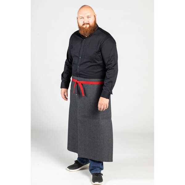 Create a boss new look with our Kingpin bistro. We start with a pinstripe denim that's so good lookingit's criminal and add red web ties. The look is finished with a patch pocket with pencil insert, reinforced bar tacking and extra-long 43" web ties.