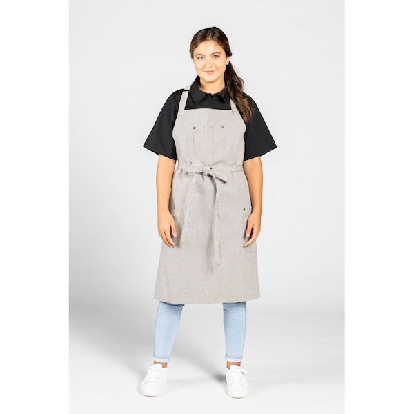It's time to evolve your look to the next level, and our Evolution Bib apron is perfect for the task. Brass rivets and ribbon denim set off the design while the three-section chest pocket, hip pocket and towel loop make it extremely functional. Features adjustable neck, reinforced bar tacking and extra-long 43" self ties.