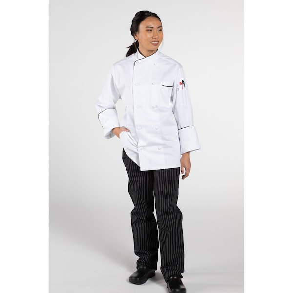 When it's time to make the rounds and hear how great the French fries taste when you spent hours on the duck, this is the coat you should be wearing. The soft comfortable cotton, a crossover collar, ten hand-rolled buttons and a two-piece executive back are all for you. The black piping on the collar, pocket and cuffs are for them.