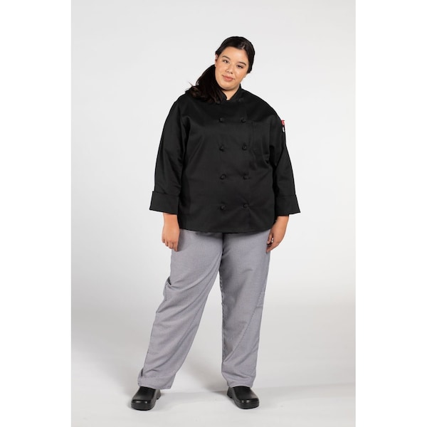 It's a wonderfully proportioned, curvy silhouetted chef coat that is all W-O-M-A-N. Features ten inset knot buttons and side vent openings.