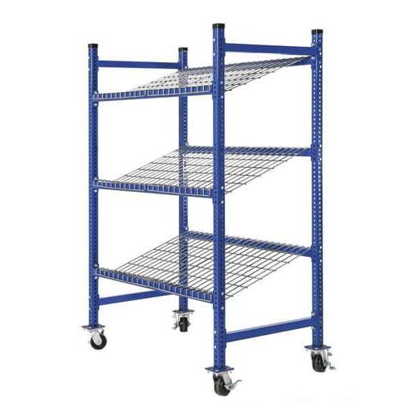 Gravity Flow Rack, 1,000 lb Load Capacity per Shelf, Number of Shelves 3, Decking Finish Powder Coated, Decking Material Steel, Powder Coated, Steel, Blue, Overall Depth 28 in, Overall Height 72 in, Overall Width 76 in, 12 ga Post Gauge, 3,000 lb Whole Unit Load Capacity, Labels