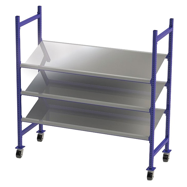 Mobile Gravity Flow Rack, 28 in D, 76 in W, 3 Shelves, Blue