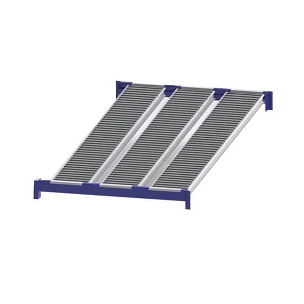 Gravity Flow Shelf, Shelf Sides Double, Tilt Shelf Angle, Overall Depth 96 in, Overall Height 2 5/8 in, Overall Width 48 in, Load Capacity per Shelf 3,000 lb, Steel, Blue, Powder Coated, Flow Mechanism Straight Profile Roller Lane