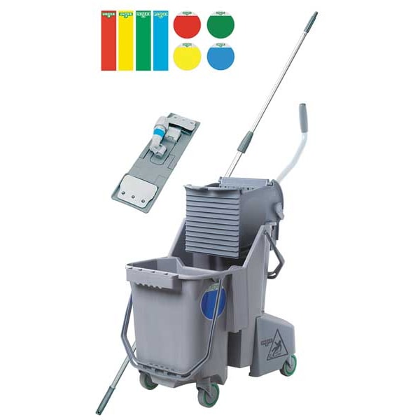 Mop Bucket and Wringer, Wringer Type Side Press, Capacity 8 gal, Bucket Material Polypropylene, Anti-Spill No, Bucket Color Gray, Includes Casters Yes, Wringer Material Polypropylene, Bucket Depth 20 in, Bucket Handle Material Steel, Bucket Length 22 in, Bucket Width 15 in, Caster Size 3 in, Caster Type Nonmarking Swivel, Color Coding System Yes, For Use With String Mop, Microfiber Flat Mop, Includes Mop Holder, Includes Bucket Handle Yes, Metal Detectable Yes, Overall Height 20 in