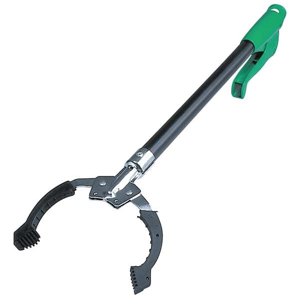 Trash Grabber, Squeeze Handle, 20 1/2 in L, 4 1/4 in Grabber Opening, Steel, Green