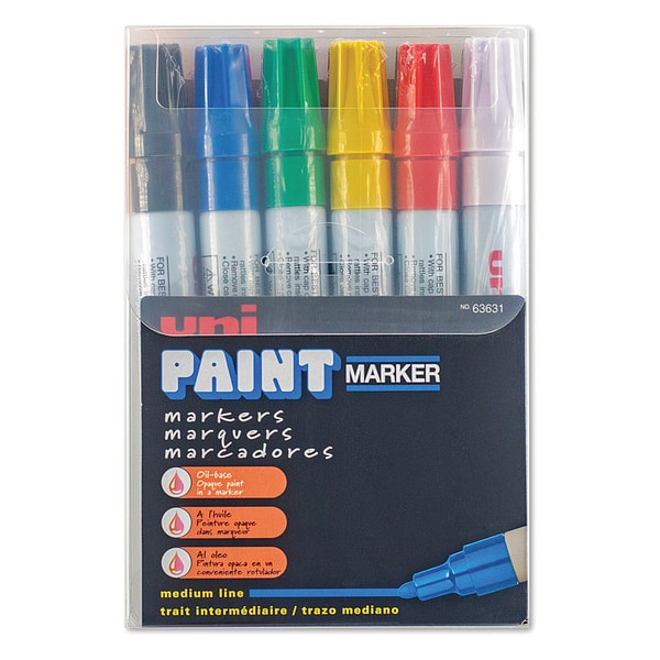 Paint Marker, Assorted, Black, Blue, Green, Red, White, Yellow, Marker Tip Bullet, Marker Cap Capped, Standards ASTM D-4236, Package Quantity 12