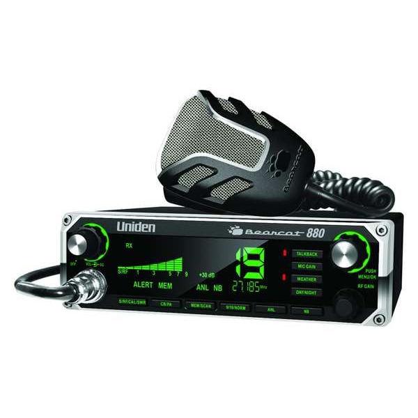 CB Radio, Number of Channels 40, 26 to 27 MHz, Overall Width 7 9/32 in, Overall Height 2 13/64 in, Overall Depth 7 51/64 in, Microphone Connector Type 6-Pin, Microphone Cord Length 8 ft, Mounting Type Mounted, Output Power 4 W, Radio Type General Purpose