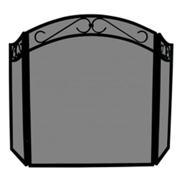UniFlame S-1088 New! 3 Fold Black Wrought Iron Arch Top Decorative Scrolls Screen Accessorize your hearth with this 3 Fold Black Wrought Iron Screen featuring an arch and handsome scrollwork on the top of each panel. This contemporary screen looks stylish and will complement any decor. Protect your carpet and floors from flying embers in style. Three panel screens are designed to sit in front of the fireplace on the hearth and should overlap the sides of the opening. If you are burning wood your screen should stand about 3 to 4 inches taller than the opening of the fireplace. For gas logs it is OK for the screen to be slightly shorter or parallel to the top of the fireplace.