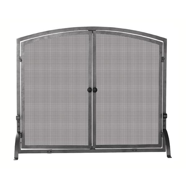 UniFlame features a single panel with two doors to make access to your fireplace easier. The contemporary iron screen has a gently arched top. The curved iron front legs add stability to this single panel screen. The Single Panel Iron Screen measures 33 inches high and 39 inches wide. Uniflames collection of specialty line fireplace accessories are of superior craftsmanship. Enhance the ambiance of your hearth with this beautiful fireplace screen. Now you can enjoy your fire while simultaneously protecting your floor from burning embers. Single Panel with Doors Gently Arched Top Curved Front Legs Add Stability Black Wrought Iron Old World Finish Helps keep sparks and burning coals from potentially causing a fire hazard Perfect for those who heat their homes with wood Measures 33 inches high x 39 inches wide Weighs 25 pounds