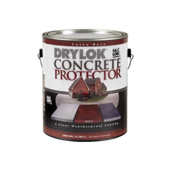 Drylok, Gallon, Latex Base Concrete Protector, Provides Clear Weatherproof Protection Against Deterioration Caused By DeIcing Salt, Household Cleaners, Gasoline, Oil, Weathering Efflorescence, White, Powdery, Salt Like Deposits Visible On Masonry, Unique Saltlok Technology Penetrates Into The Surface Providing Superior Resistance To Unsightly Efflorescence Staining Often Visible On Brick, Block Poured Concrete Surfaces