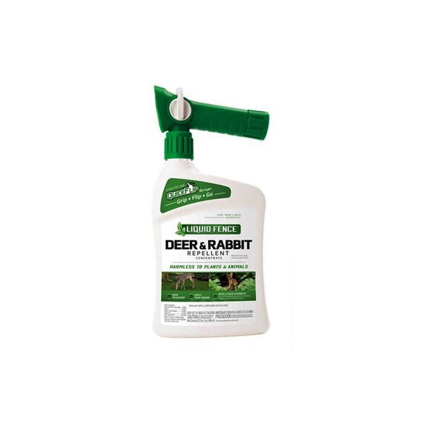 QT Ready To Spray Liquid Fence Deer & Rabbit Repellent Use To Repel Deer & Rabbits From Gardens & Landscaped Areas Long Lasting Rain Resistant & Works Year Round Will Not Harm Plants Or Animals Treats 5000 SQFT Environmentally Safe & Comes With A 100% Money Back Guarantee.
