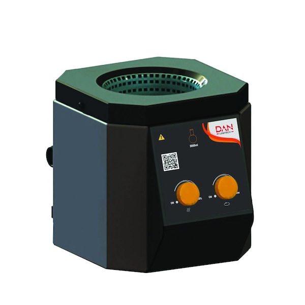 This series of analog heating mantles includes a built-in stirrer function. Separate knobs control the temperature level up to 400° C and stirring speed up to 800 rpm. Case is constructed of durable stainless steel and aluminum materials. Knitted mantle is made from glass fiber yarn and designed to securely hold round bottom flasks with the top half of the flask visible during operation. Available in various sizes to hold flasks from 100 ml to 5000 ml capacity. Includes a spill collect system to drain solution if a flask breaks during use.