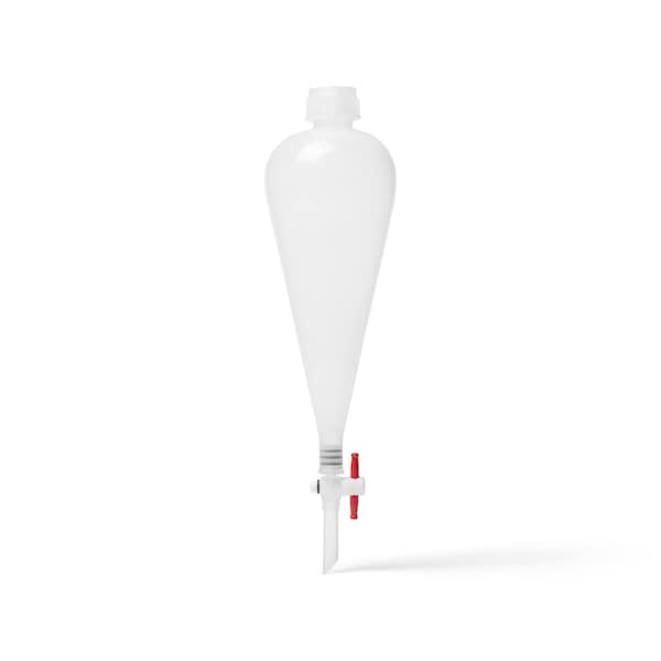 These pear-shaped polypropylene separating funnels feature excellent clarity and strength, and include a leak-proof threaded screw cap. The polypropylene stopcock is fitted with a self-lubricating PTFE plug. Not graduated.