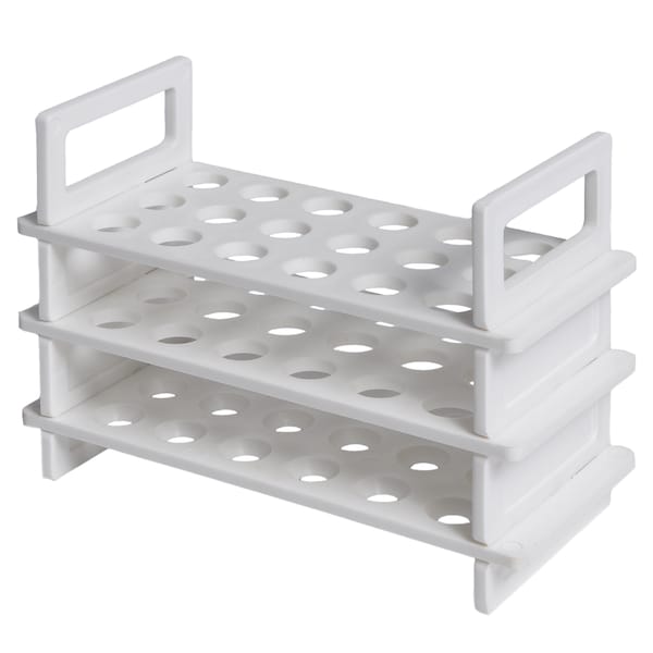 Polypropylene racks with a 3-tier design provide a clear view of the tube contents and convenient insertion and removal of tubes.