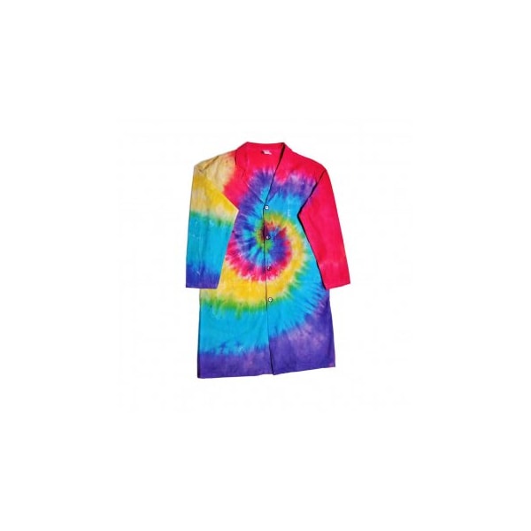 Popular Tie Dye Lab Coat features 100% cotton fabric. Coats feature an exterior left chest pocket, two roomy side pockets, four button closure and a one-piece notched collar. Sleeves are designed with side arm seams that allow extra comfort and easier movement.
